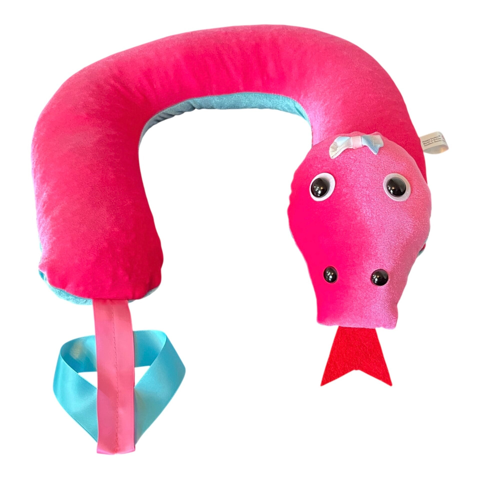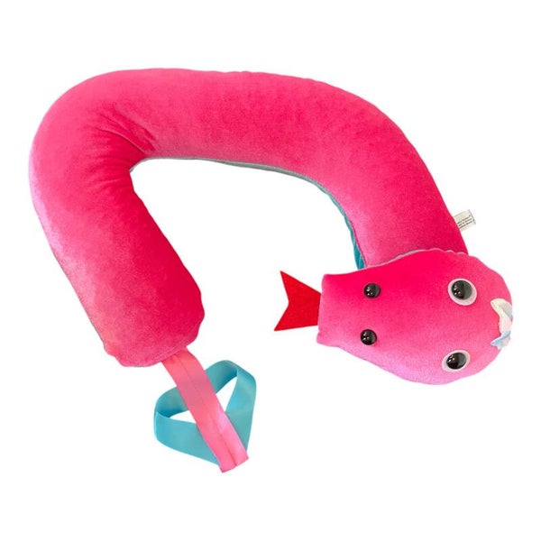 Happy Snake is designed to be placed around shoulders providing weighted therapy with a comforting sensation. Happy Snake has a turning head and is made from pink velvet fabric with turquoise soft velvet underside. She feels very cosy around shoulders. She can contort into different shapes. She Weighs approx 1.5kg measures approx 78cm Length.. Suitable for day time use. To be used under supervision of an adult. Always assess suitability of weight to user. Recommend wipe clean only.